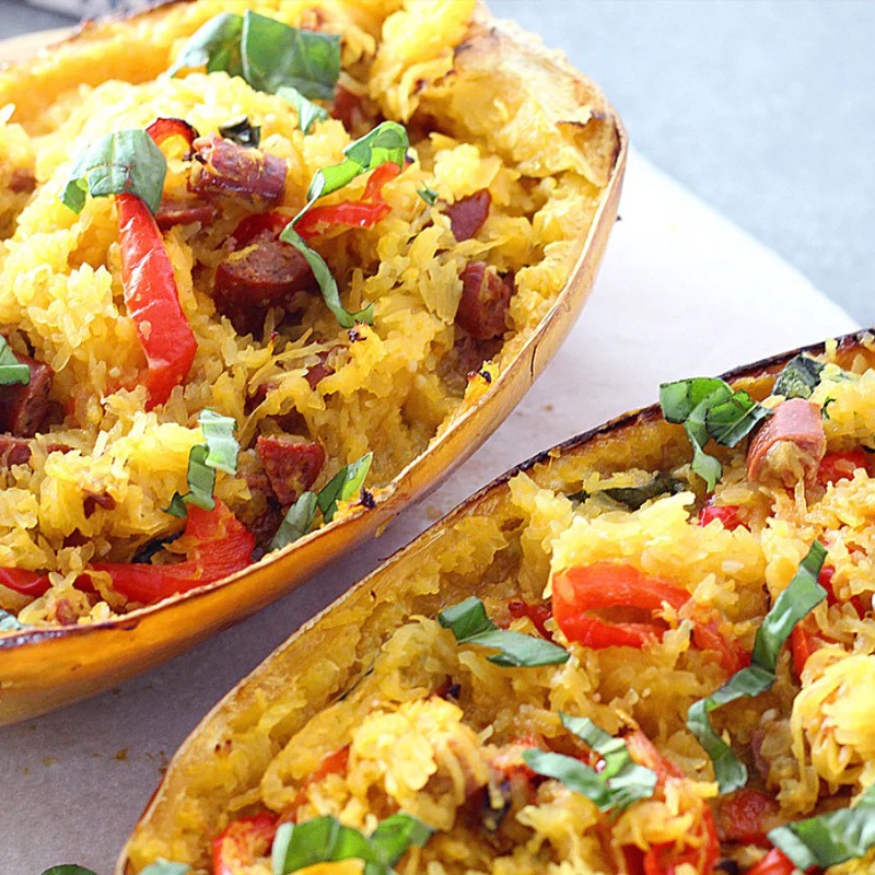 Check out this delicious Red Pepper Spaghetti Squash Sausage Bake recipe on the Teton Waters Ranch website: